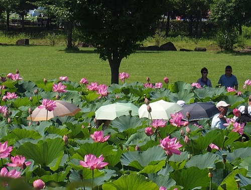 日傘も古代蓮にマッチして