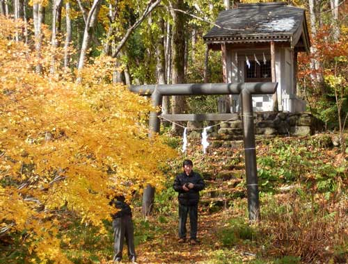 奥裾花渓谷(小さな祠と鳥居と黄葉)