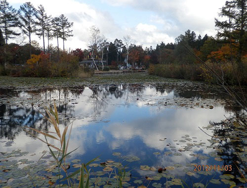 妙高高原いもり池(後ろにある妙高山は雲の中)